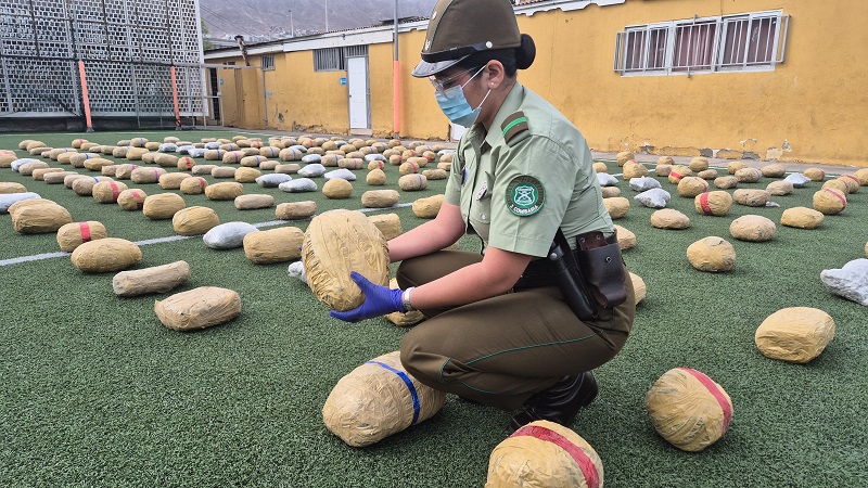 Carabineros decomisó cerca de media tonelada de drogas (marihuana y pasta base) y 500 municiones de guerra ocultas cerca de la frontera en la región de Antofagasta, tras encontrar una camioneta robada abandonada.
